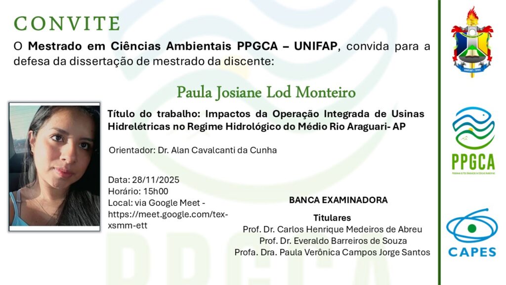 Convite Defesa de Dissertação Paula Josiane Lod Monteiro Autor do post:ppgca Post publicado:27 novembro, 2025 Categoria do post:Sem categoria Comentários do post:0 comentário Leia mais artigos Post anteriorConvite Defesa de Mestrado discente Barbara Patrícia Lima Pena Você também pode gostar SELEÇÃO PARA BOLSA DE PÓS-DOUTORADO / TEDPLAN (EDITAL Nº 01/2025 – PPGCA/UNIFAP) 26 fevereiro, 2025 EM BREVE, EDITAL PPGCA 2025 27 junho, 2025 📢 NOVA ESPÉCIE DE PARASITA DESCOBERTA NA AMAZÔNIA! 12 outubro, 2024 Deixe um comentário Cancelar respostaComentárioDigite seu nome ou nome de usuário para comentar Digite seu endereço de e-mail para comentar Digite o URL do seu site (opcional)